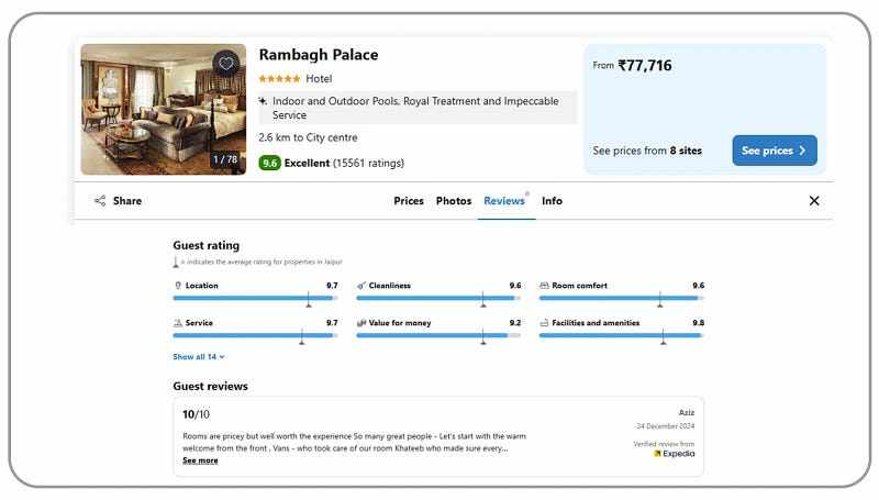 Guest ratings on Trivago often highlight detailed aspects of hotel services such as staff behavior, cleanliness, food quality, and location. Monitoring these consistently allows businesses to identify which areas create the strongest impact on ratings and, in turn, revenue. For instance, properties with consistently high cleanliness scores often report significantly higher booking rates, proving that service quality directly impacts profitability.